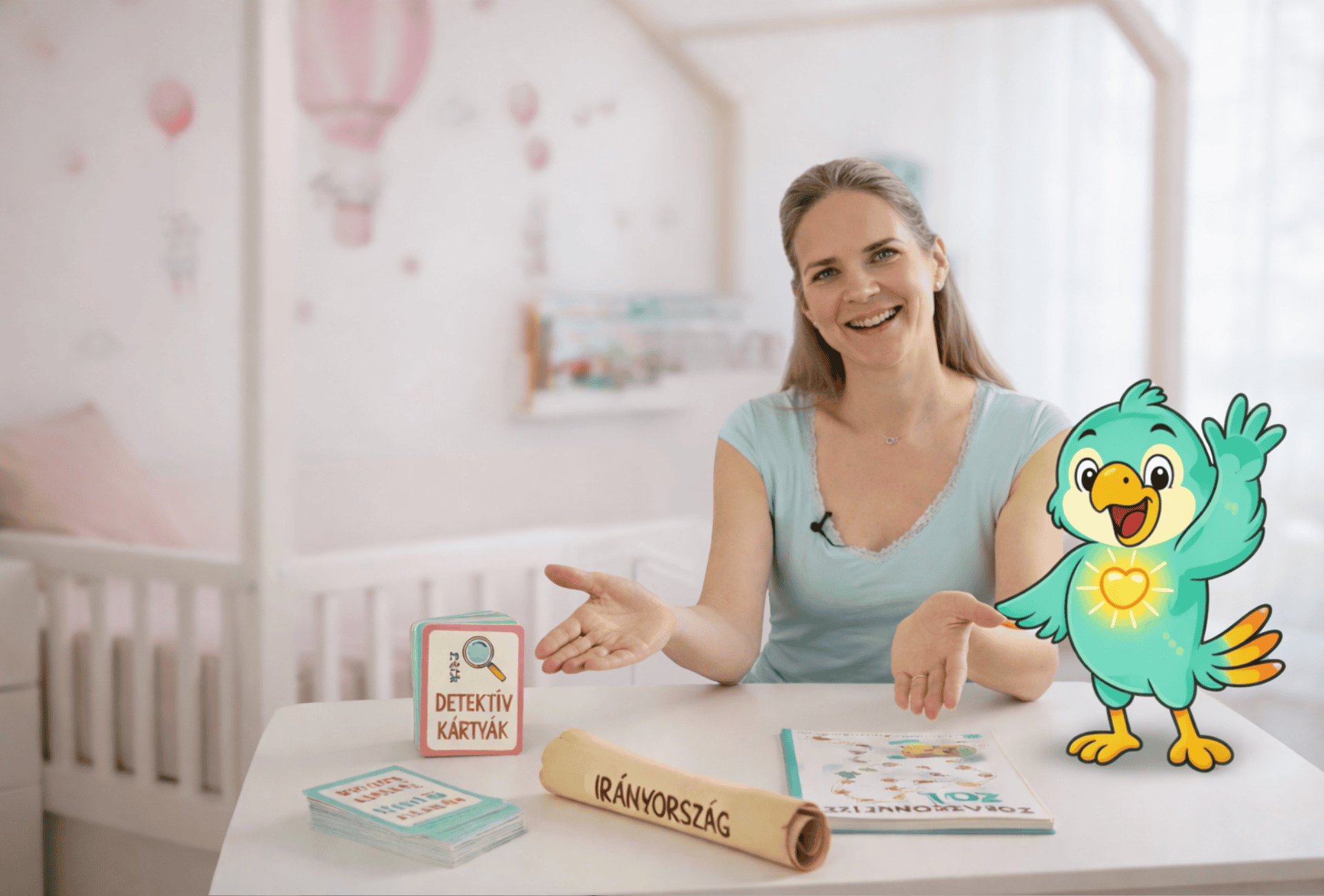 Pontosan tudom, milyen zsúfoltak a hétköznapok. A programot úgy építettem fel, hogy a játékok többsége napi 5-10 perc alatt elvégezhető. Nem „plusz teher”, hanem a minőségi közös idő része. A videók rövidek és lényegretörőek, a gyakorlatokat pedig beépítheted az esti rutinba vagy a hétvégi közös móka idejébe.