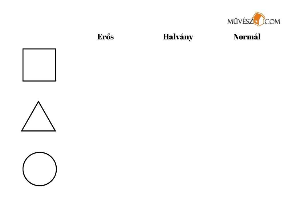 Kérd meg gyermekedet, hogy rajzolja az adott forma mellé a vonalakat először nagyon erősen rányomva, majd nagyon halványan, és végül próbálja normál nyomással. Segíts neki meghatározni a normál verziót, finoman rávezetve a görcsös és a túl halvány nyomás közötti egyensúlyra.
