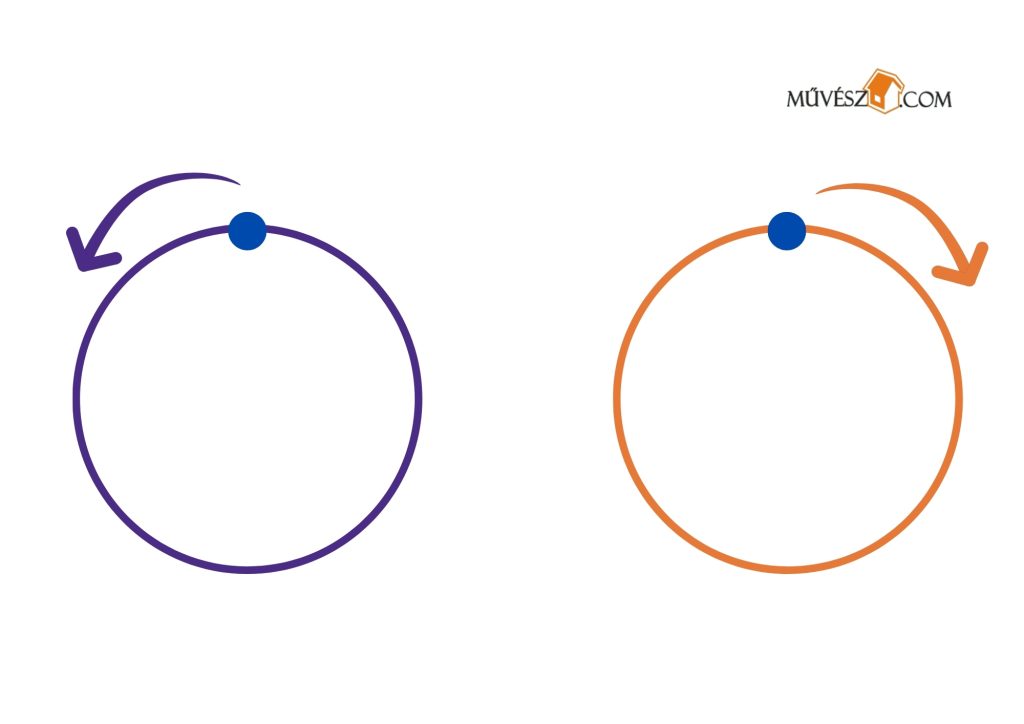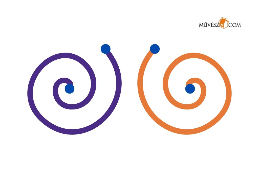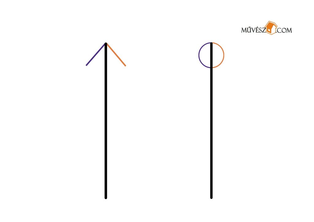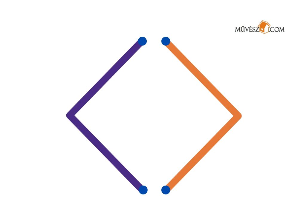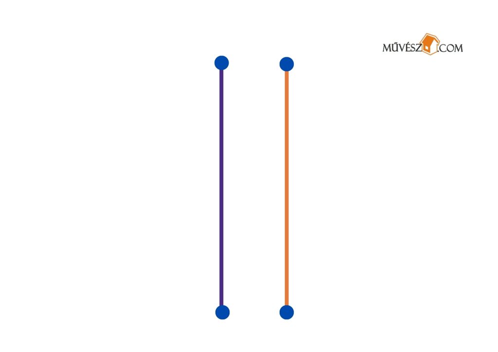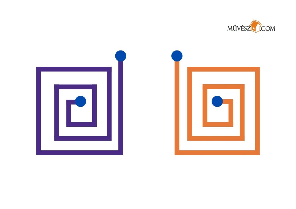 Ez egy kicsit nehezebb feladat, de érdemes megpróbálkozni fele. Szintén mindkét kezében ceruzákat/filceket tartva rajzolja át egyszerre a két vonalat!